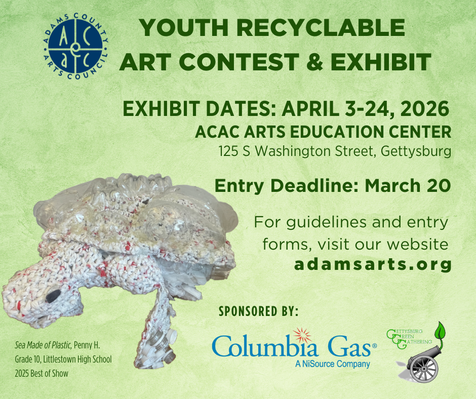 Three entries will win the “Repurposed Art” award. This category will be judged across all age groups, and cash prizes will be given to first, second, and third place winners. Awards will be given based on a work’s transformation of recycled materials into a useful, everyday object, like a chair or flowerpot, for example.